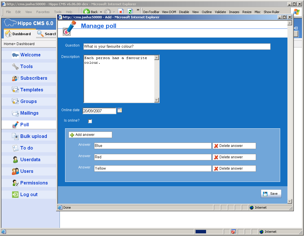 The Hippo Community Apps are more than just a tool to manage your mailings. It also contains a graphical user interface to manage polls for your website or intranet.