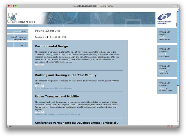 First I created two document types, one for normal text and one for “research programmes” (leaving away some fields compared to the original site). Then there was the time consuming part: copy-pasting enough content for a decent paging in the site. For real projects there are migration tools available to convert the XML content from the WebDAV repository to JCR nodes and properties.