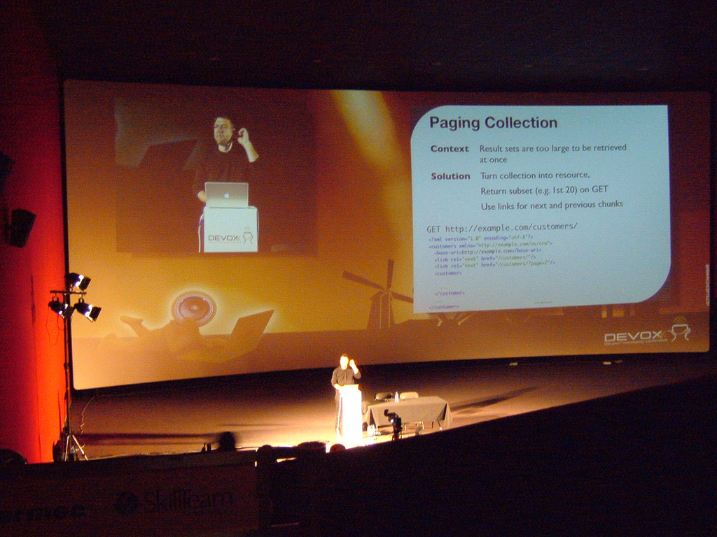 Forget Web 2.0, maybe use AJAX in your title, but REST is the buzzword of Devoxx 2008. Luckily it wasn’t only a buzzword but also the subject of one of the talks. To be honest, I had heard of REST before but didn’t fully understand what all the fuzz was about and too lazy to actually read more about it. I’ll only cover one talk explicitly but there were many more with REST in the subject or mentioning it.